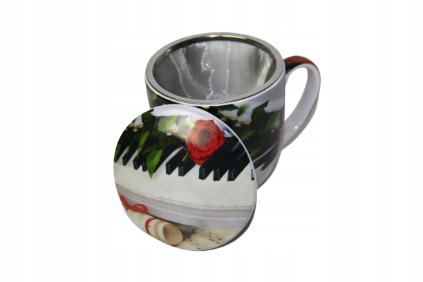 Kubek z zaparzaczem - grafika pianino - porcelanowy