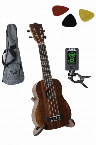 Model ukulele sopranowego o którym piszemy to instrument wykonany z drewna tekowego a więc diametralnie różniący się brzmieniem od ukulele wykonanych z drewna lipowego. Dźwięk jest pełniejszy, mocniejszy i bardziej wyrazisty. W zestawie otrzymasz pogrubiany pokrowiec z szelkami i kieszonką marki flight, dedykowany do ukulele sopranowego, tuner / stroik uniwersalny oraz kostki / piórka.