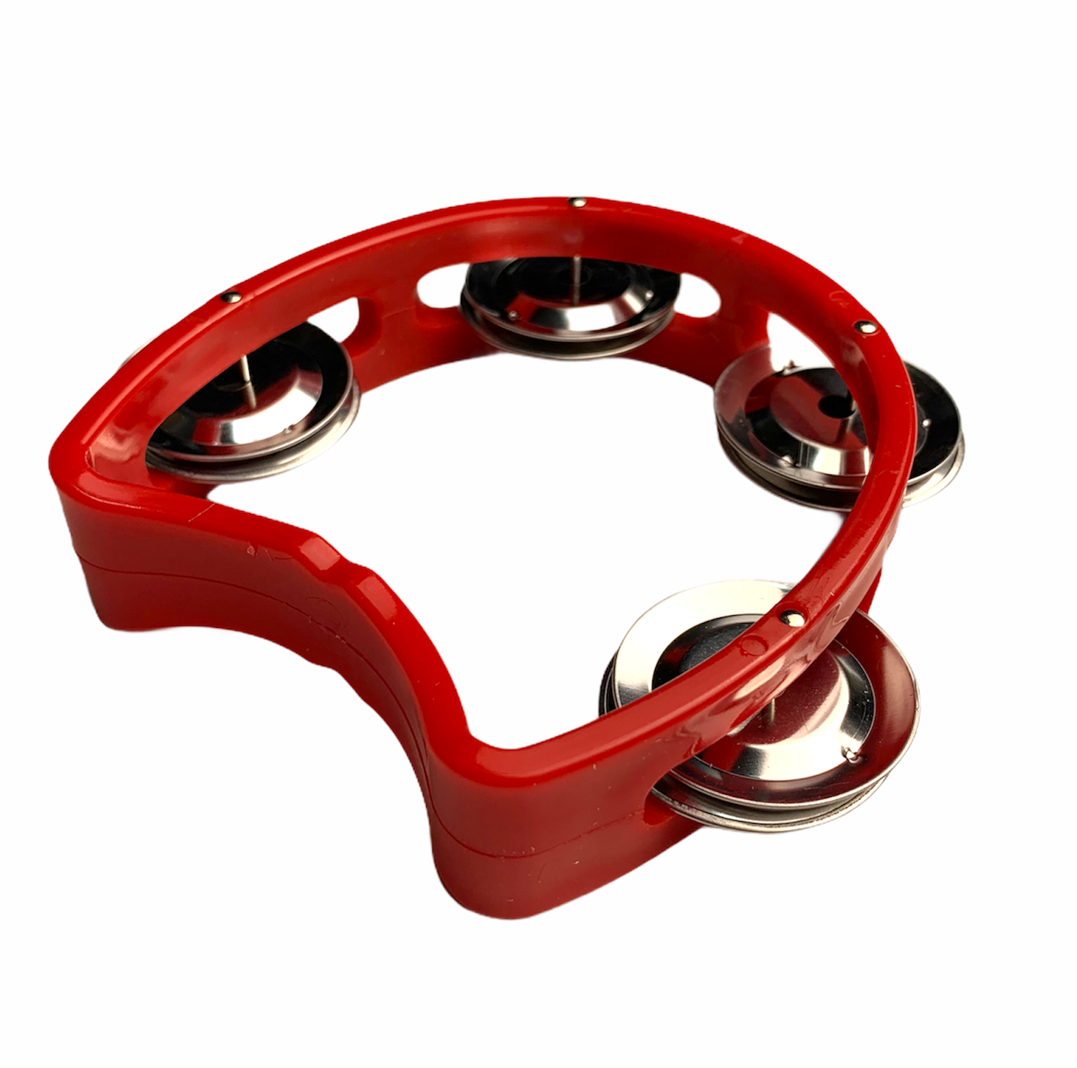 ⭐ Tamburyn półksiężyc - czerwony - wykonany z tworzywa sztucznego - 4 pary dzwonków