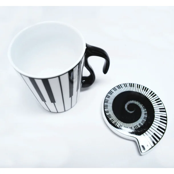 Kubek z pokrywką w kształcie klawiatury to doskonały wybór dla każdego miłośnika muzyki. Jego uchwyt w formie nutki dodaje mu unikalnego charakteru. Dzięki eleganckiemu designowi, picie porannej kawy lub herbaty staje się przyjemnością, a kubek będzie ozdobą każdej kuchni czy biura. Zapakowany w ozdobne pudełko, świetnie nadaje się na prezent.