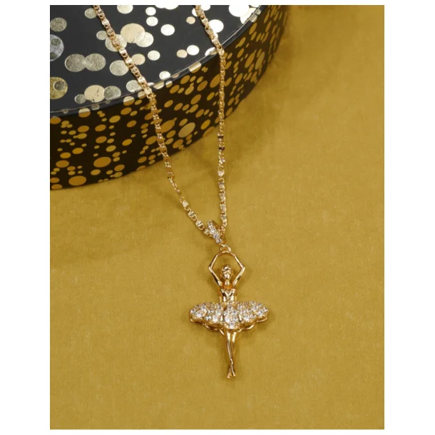 Elegancki, pozłacany naszyjnik w kształcie tańczącej baletnicy. Idealny dodatek do codziennego looku i piękny pomysł na prezent, nie tylko dla baletnic.