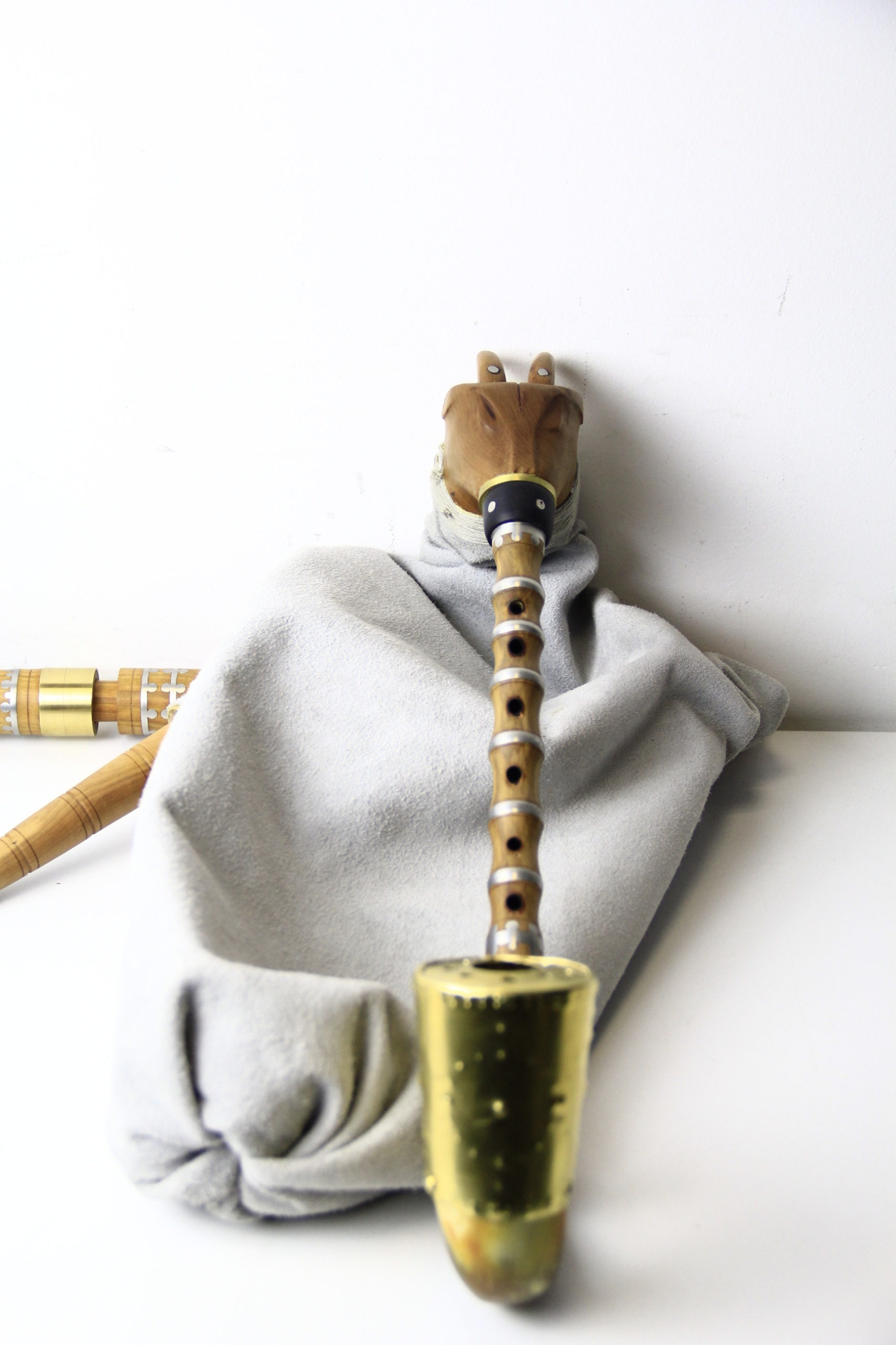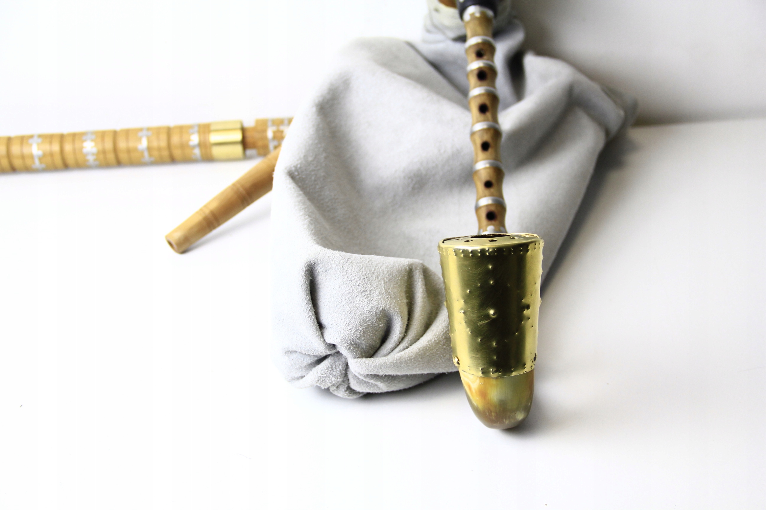 Elementy drewniane to dzika czereśnia. Części te zostały zabezpieczone od środka olejem lnianym, od zewnątrz natomiast woskiem. Worek czyli miech został zrobiony ze skóry licowej. Jest on zszyty oraz sklejony, by powietrze nie uciekało ze środka (im bardziej szczelny worek, tym łatwiejsza gra). Pierścienie w elementach z drewna są cynowe, natomiast zakończenia tych elementów zrobione są z mosiądzu oraz krowiego rogu. Stroiki zrobione są z włókna węglowego.