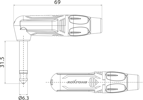 Złącze 1: Wtyk Kątowy Jack 6,3mm Mono