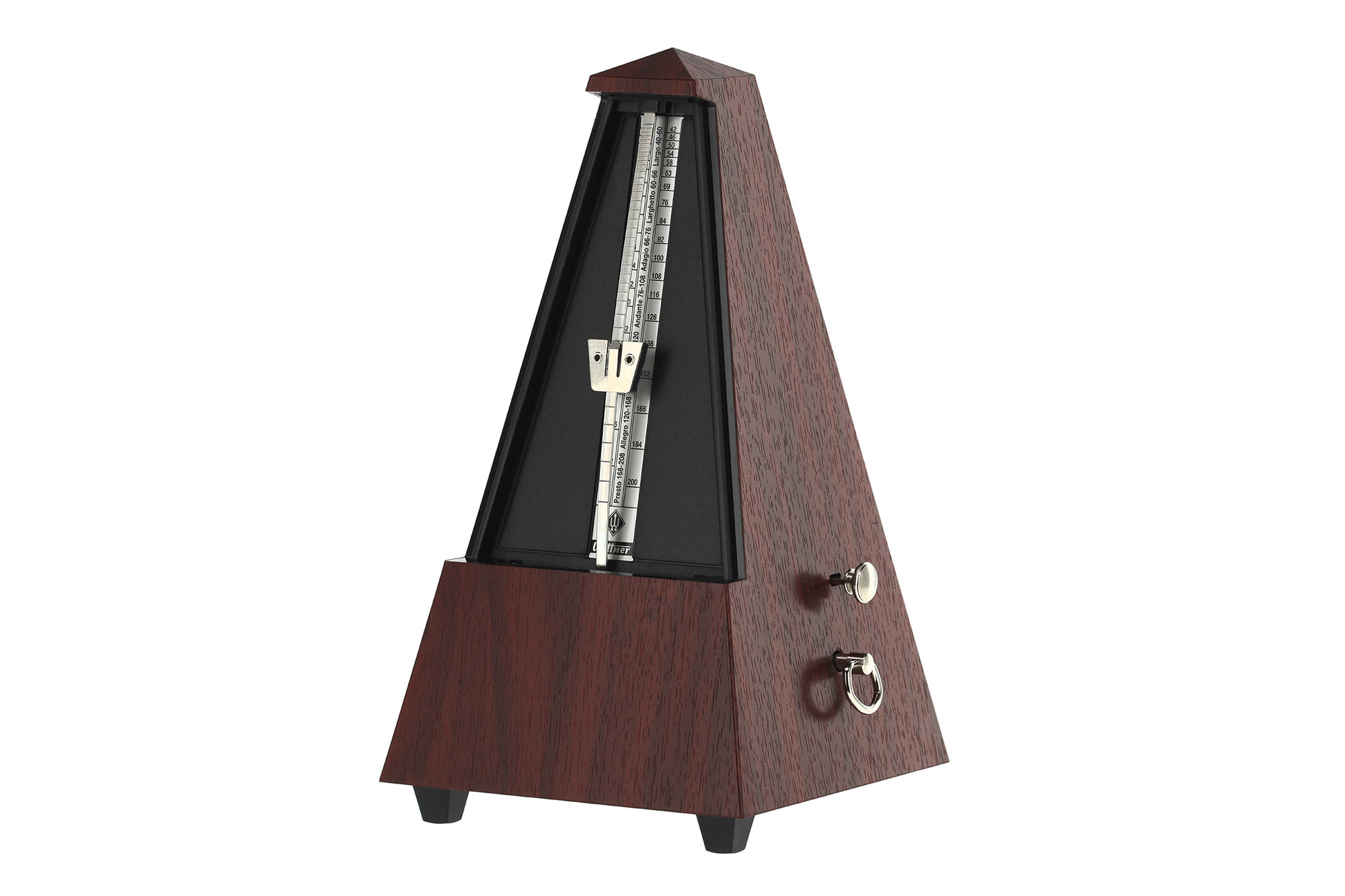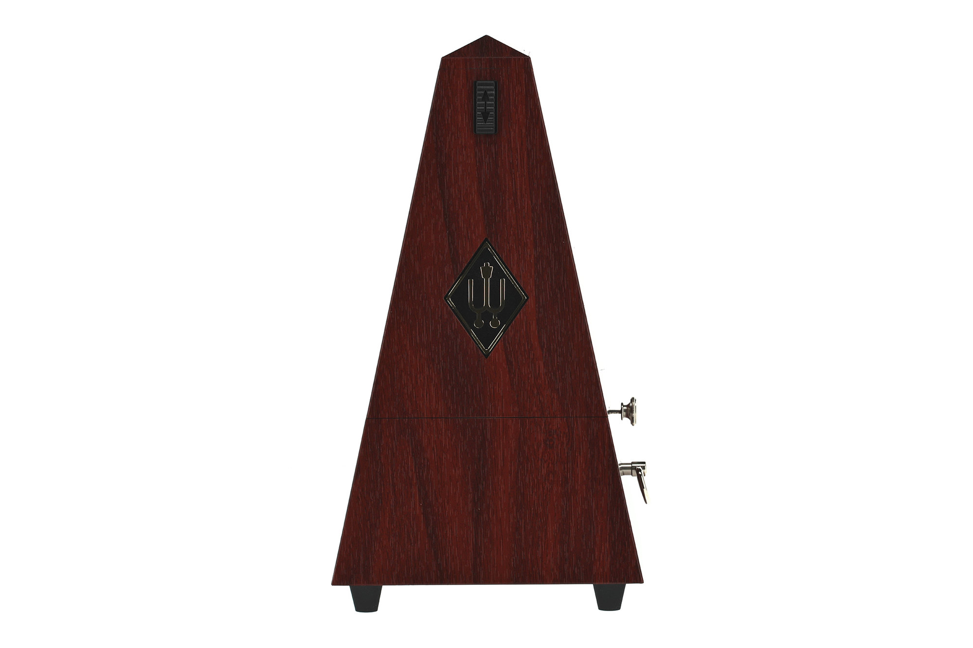 Model 903330 wyposażony jest w dzwonek akcentujący pierwszy takt, co ułatwia kontrolę metrum i pracę nad frazowaniem. Obudowa z tworzywa sztucznego zapewnia niską wagę i wysoką trwałość, a klasyczny kolor mahoń nadaje metronomowi tradycyjny, elegancki wygląd.