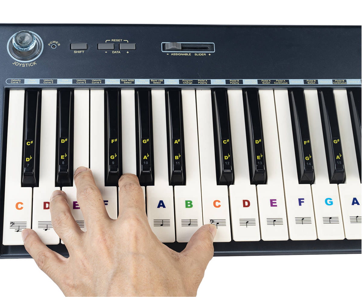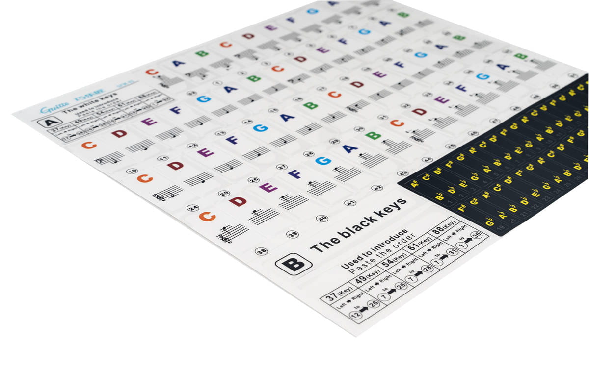 ➡️ Naklejki na pełne pianino (88 klawiszy). Nic nie stoi jednak na przeszkodzie aby używać ich grając na keyboardzie z mniejszą ilością klawiszy.