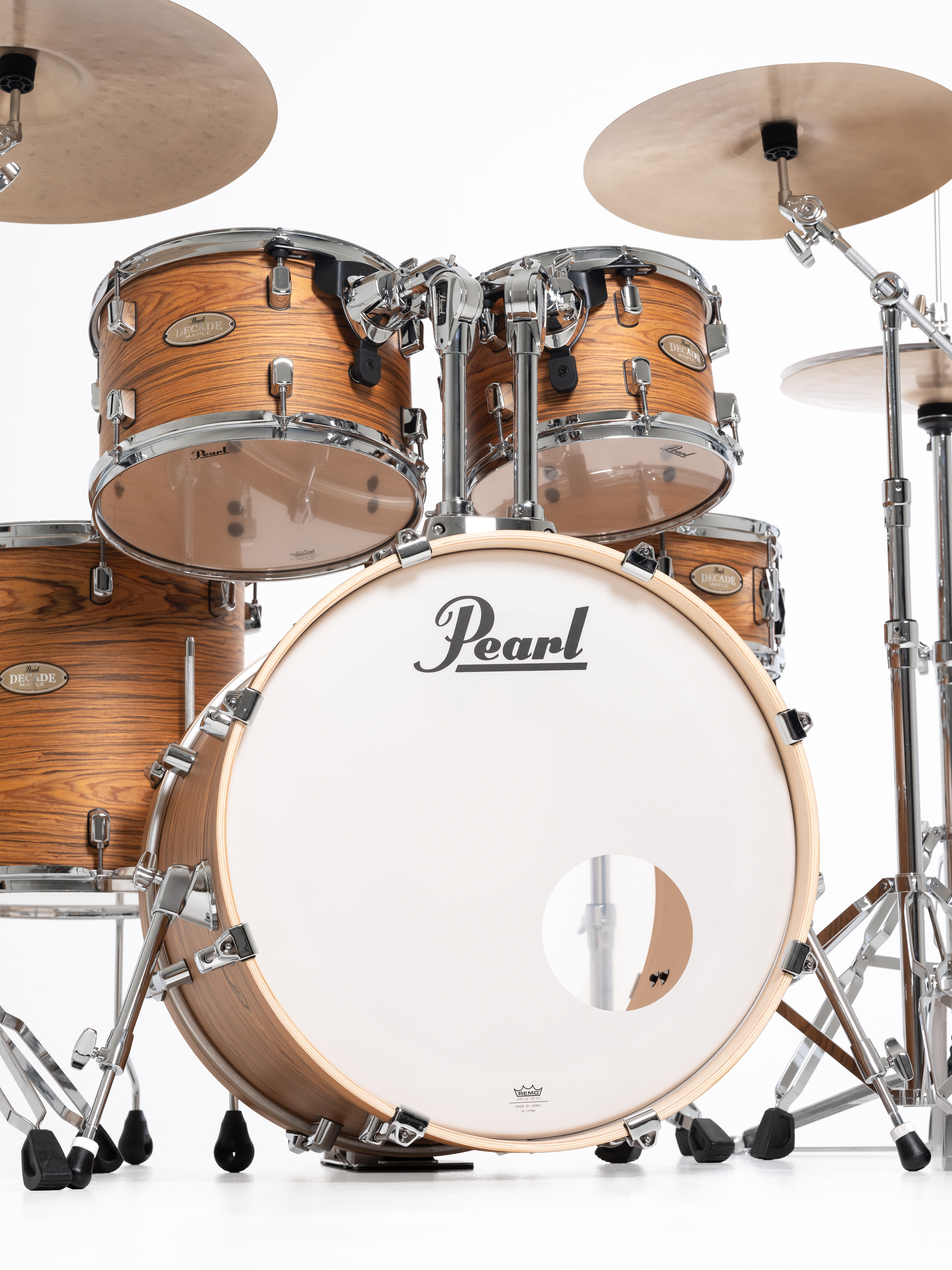 Pearl Decade Maple to pięcioczęściowy zestaw perkusyjny składający się z 5,4 mm bębnów klonowych. Wszystkie bębny z serii Deacade Maple są wykonane w technologii Superior Shell i składają się z sześciu warstw drewna. Zestaw perkusyjny Pearl Decade jest wyposażony w naciągi Remo UT Clear Ambassador na tomach oraz Ported i Powerstroke 3 na centrali. Dwa tom-tomy są zamontowane neutralnie pod względem wibracji za pomocą systemu montażowego OptiLoc firmy Pearl. Chromowane uchwyty NDL w połączeniu z lakierowanymi wykończeniami robią doskonałe wrażenie wizualne. Seria Pearl Decade Maple jest idealna dla zaawansowanych perkusistów, którzy koncentrują się na profesjonalnym brzmieniu i doskonałej jakości wykonania. W zestawie znajduje się wysokiej jakości hardware.