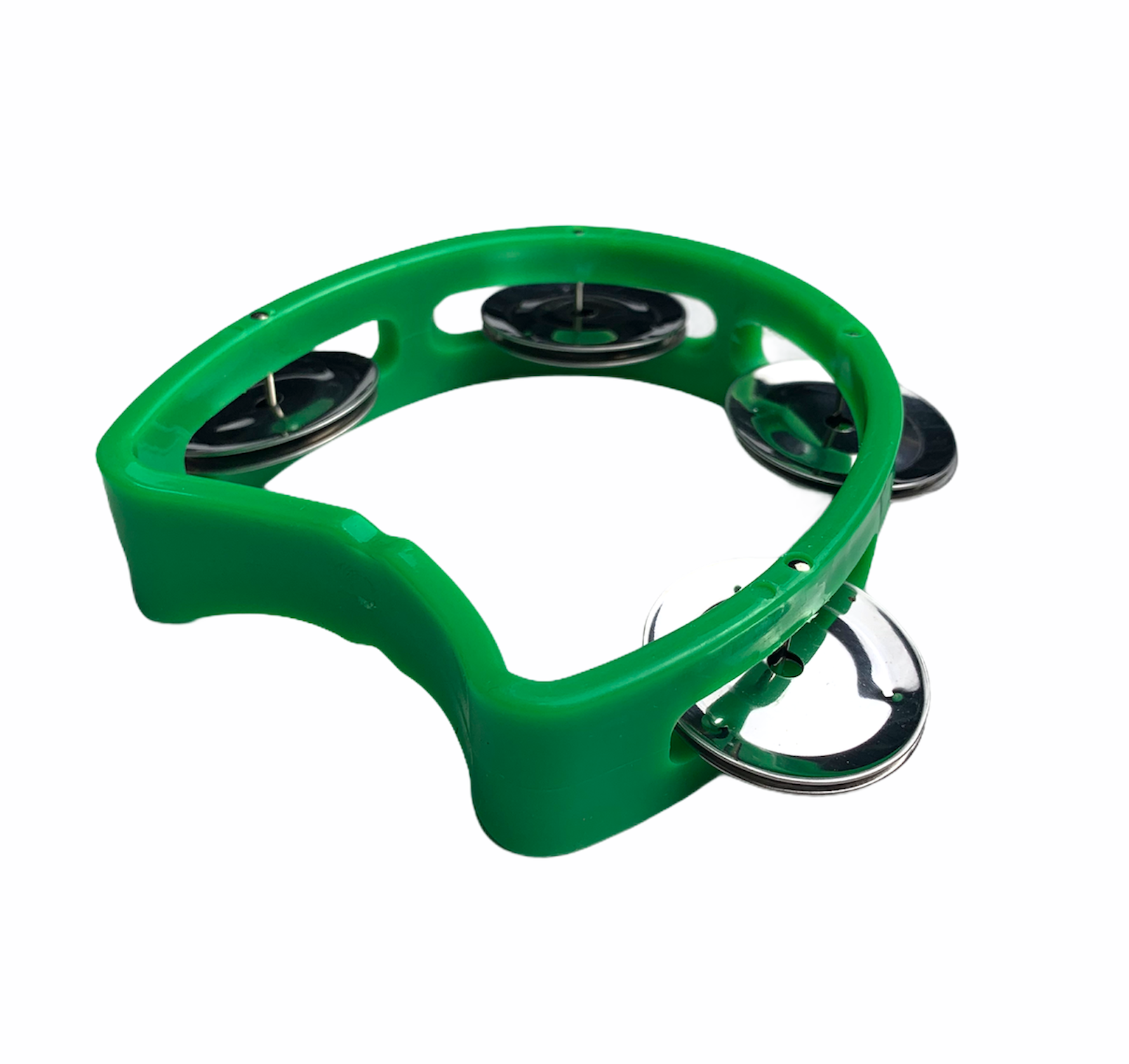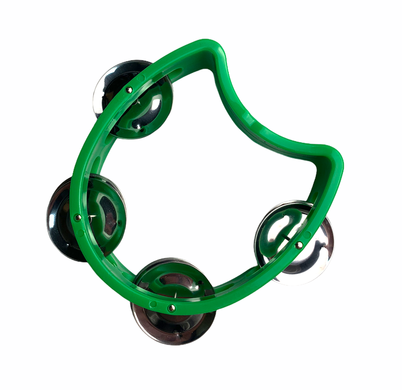 ⭐ Tamburyn półksiężyc - zielony - wykonany z tworzywa sztucznego - 4 pary dzwonków