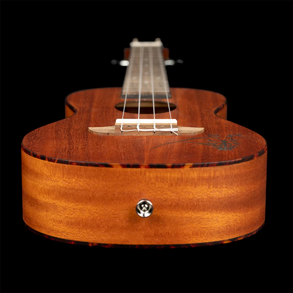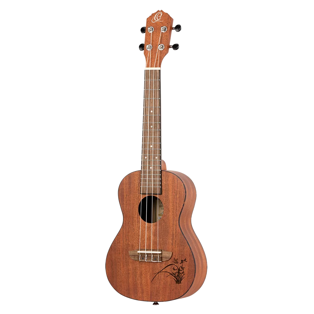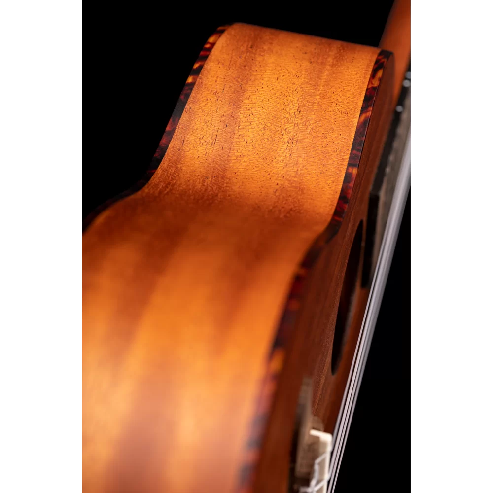 Ortega RU5MM-SO to ukulele sopranowe wykonane w całości z drewna sapele (podgatunek mahoniu afrykańskiego), które charakteryzuje się ciepłym i przyjemnym brzmieniem, z wyraźnie podkreślonym środkiem.