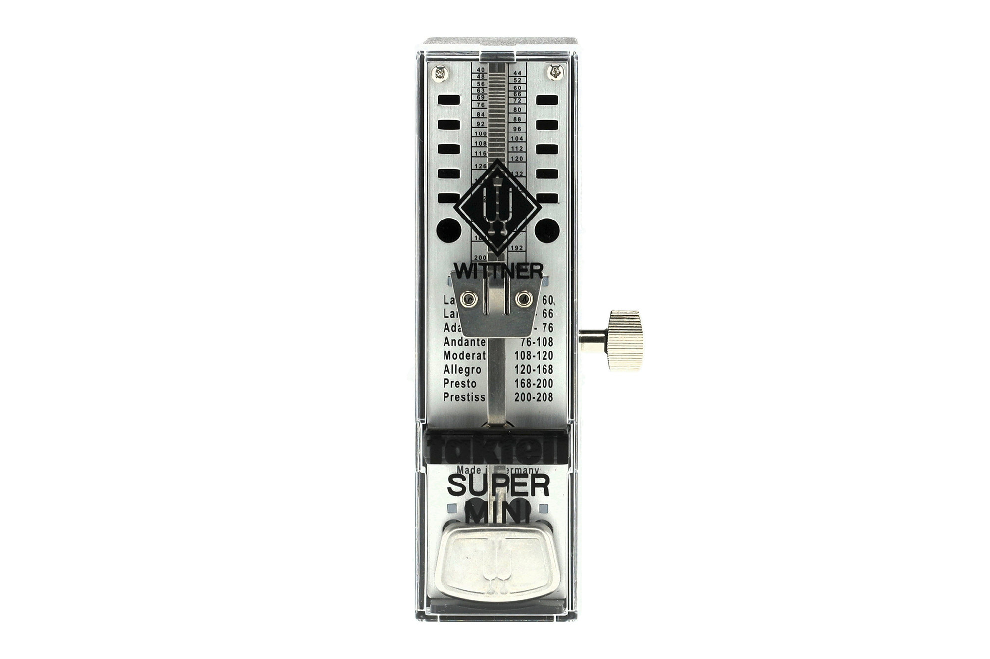 Wittner Super Mini 903014 to kompaktowy metronom mechaniczny, stworzony z myślą o muzykach ceniących niezawodność, precyzję i klasyczne rozwiązania. Marka WITTNER® od 1895 roku wyznacza standardy w produkcji metronomów, a modele sygnowane nazwą TAKTELL® od dekad są synonimem jakości wśród profesjonalistów na całym świecie.