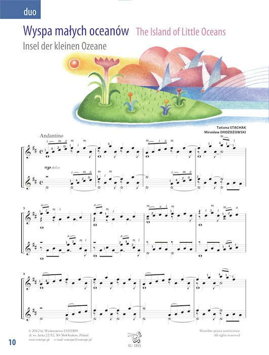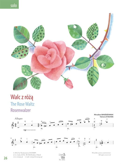 Autorką pomysłu jest Tatiana Stachak, która zaprosiła do współpracy Mirosława Drożdżowskiego i do skomponowanych przez niego, lub niekiedy wspólnie z nim, solowych partii dopisała głos drugiej gitary. Kompozycje o średnim poziomie trudności utrzymane są w swobodnej stylistyce: od bluesa, poprzez ragtime, rytmiczną bossę, aż po nastrojową milongę i latynoamerykański walc. Polecamy tę publikację nie tylko ze względu na jej uniwersalny charakter, ale również na zawarte w niej wartościowe, zróżnicowane stylistycznie utwory.
