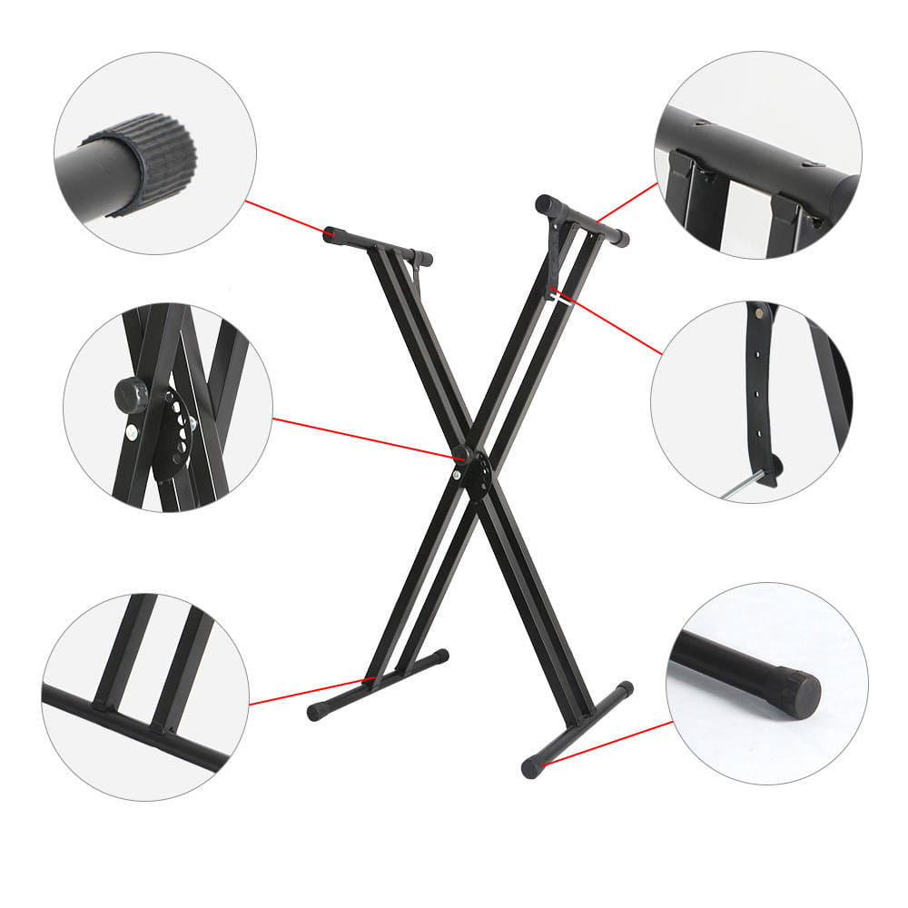 Statyw został zaprojektowany z myślą o stabilności. Posiada podwójne nogi, które zapewniają solidne podparcie i eliminują drgania podczas gry. Dzięki temu można skupić się na muzyce bez obaw o niestabilność statywu.