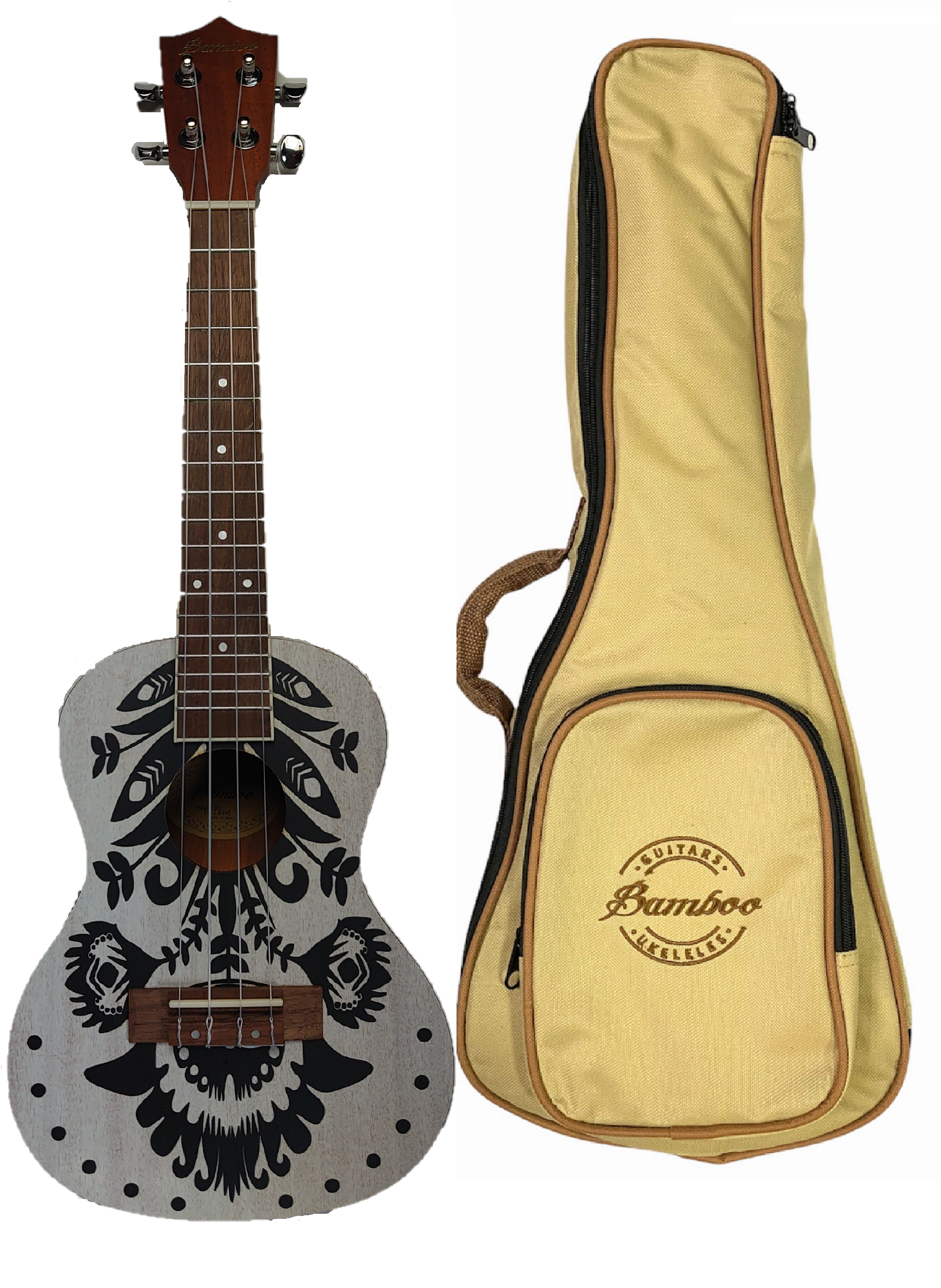 ⭐ Ukulele koncertowe Bamboo P5 etno wzór z pokrowcem