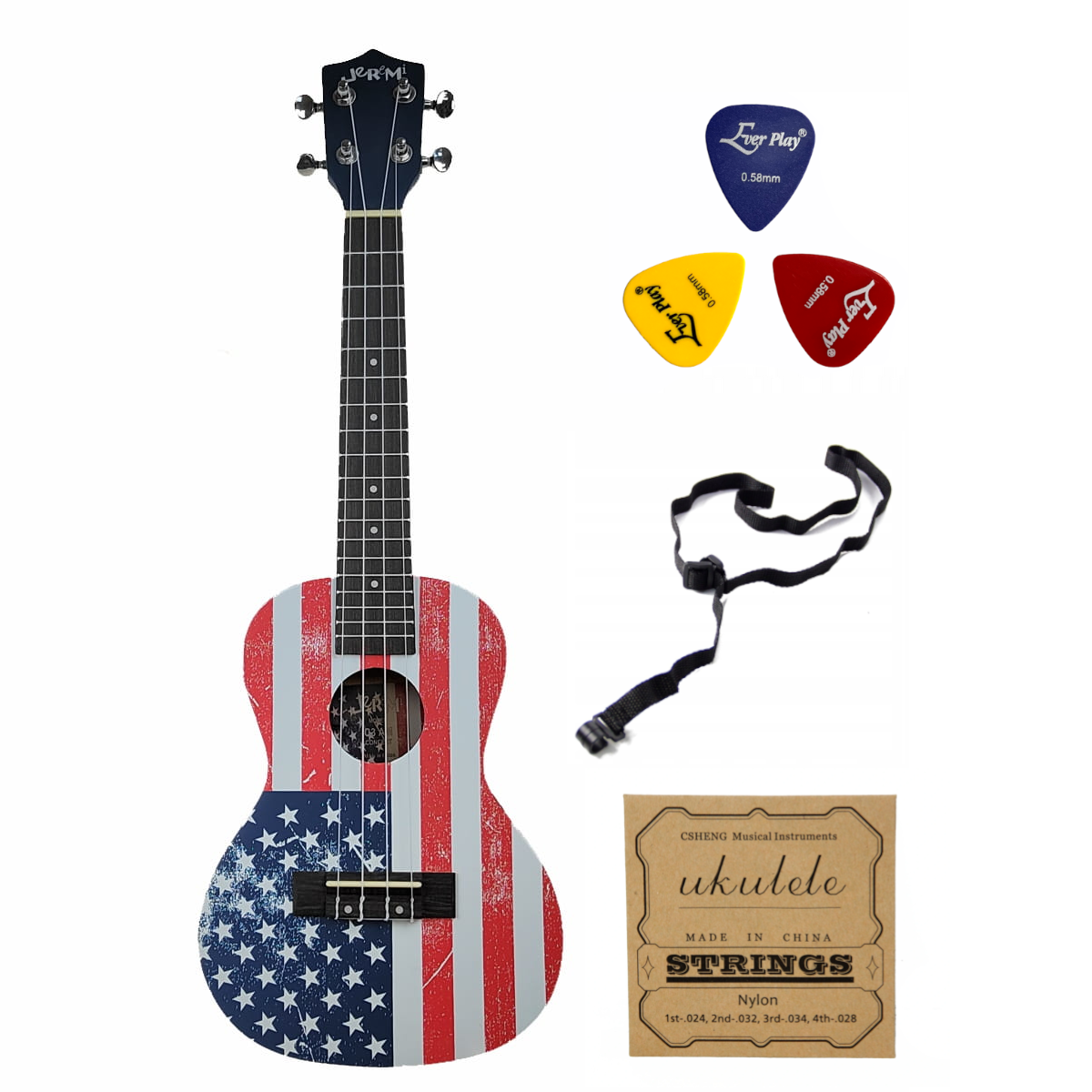 ⭐ Ukulele sopranowe Jeremi S3-AM flaga USA zestaw